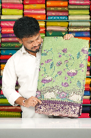 Linen Tissue Pichwai Digital Print Parrot Green With Purple Saree
