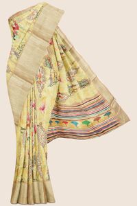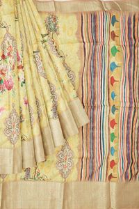 Linen With Jute Mix Floral Digital Print Golden Yellow And Light Brown Saree