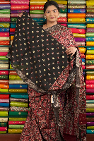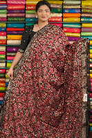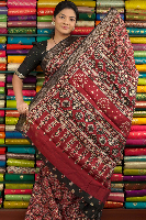 Maheswari Silk Ajrakh Print Maroon With Black Saree