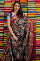 Maheswari Silk Flora Digital Print Navy Blue With Pink Saree