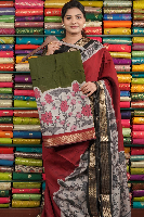Maheswari Silk Floral Design Mehandi Green With Maroon Saree