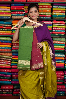 Maheswari Silk Ganga Yamuna Design Green And Dark Maroon Saree