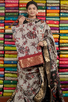 Maheswari Silk Kalamkari Design Light Grey With Maroon Saree