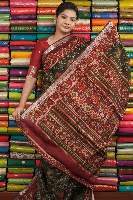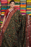 Maheswari Silk Kalamkari Print Bottle Green With Maroon Saree