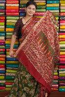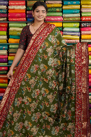 Maheswari Silk Kalamkari Print Mehandi Green With Maroon Saree