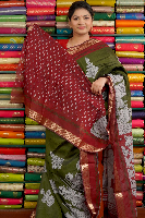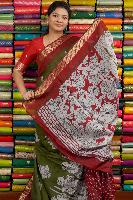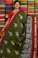 Maheswari Silk Kalamkari Print Mehandi Green With Maroon Saree
