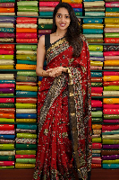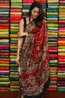 Maheswari Silk Kalamkari Print Red And Black Saree