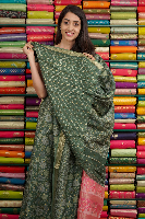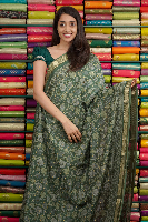 Makhan Silk Gold Zari And Digital Print Green Saree
