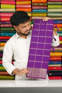 Mal Chanderi Checks With Rudraksha Butti Dark Purple With Pink Saree