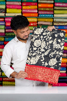 Mal Chanderi Floral Kalamkari Print Kanchi Border Black With Red Saree