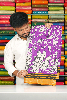 Mal Cotton Silk Kalamkari Print Purple With Mustard Yellow Saree