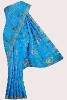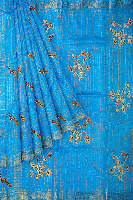 Mangalagiri Checks Embroidery Work Bright Blue Saree