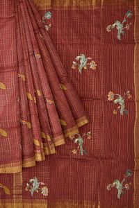 Mangalagiri Checks Embroidery Work Dark Maroon Saree