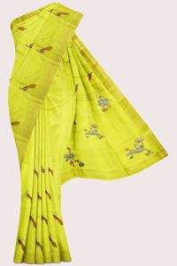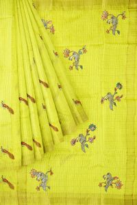 Mangalagiri Checks Embroidery Work Lemon Yellow Saree