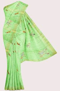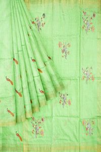 Mangalagiri Checks Embroidery Work Pista Green Saree