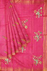 Mangalagiri Checks Embroidery Work Rani Pink Saree