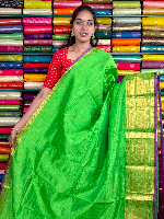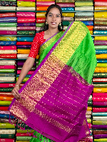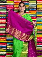 Mangalagiri Pattu Gold Zari Border Green With Magenta Pink Saree
