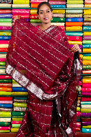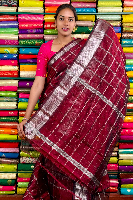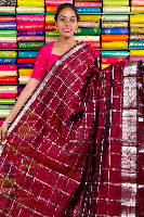 Mangalagiri Pattu Silver Zari And Check Chocolate Brown Saree