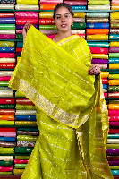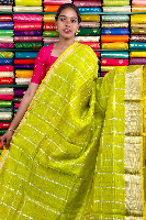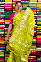 Mangalagiri Pattu Silver Zari And Check Neon Green Saree