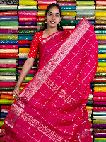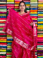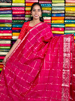 Mangalagiri Pattu Silver Zari Border And Checks Pink Saree