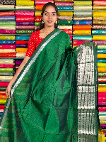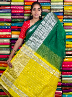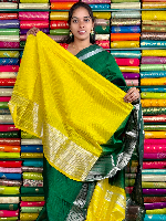 Mangalagiri Pattu Silver Zari Border Bottle Green With Yellow Saree