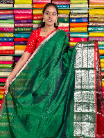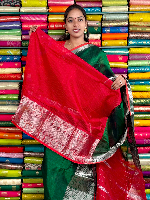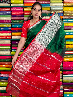 Mangalagiri Pattu Silver Zari Border Green With Red Saree