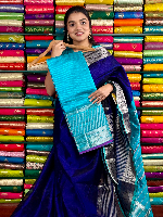Mangalagiri Pattu Silver Zari Border Rama Blue With Magenta Pink Saree