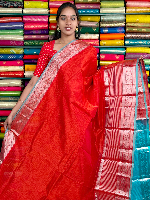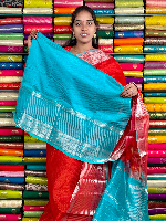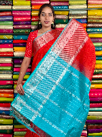 Mangalagiri Pattu Silver Zari Border Redish Orange With Sea Green Saree