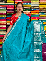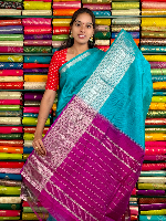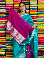 Mangalagiri Pattu Silver Zari Border Sea Green With Magenta Pink Saree