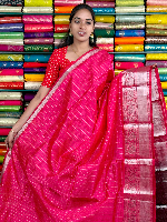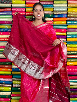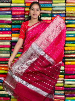 Mangalagiri Pattu Silver Zari Border Vertical Lines Pink With Wine Saree