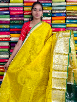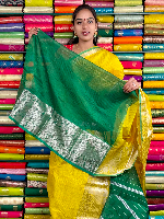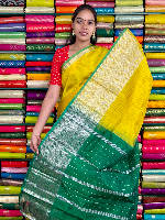 Mangalagiri Pattu Silver Zari Border Yellow With Green Saree
