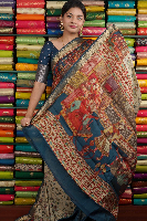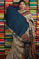 Mangalagiri Silk Mango Print Chikoo And Peacock Blue Saree
