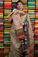 Mangalagiri Silk Mango Print Chikoo And Pink Saree
