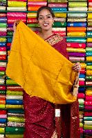 Mashru Crepe Gold Kanchi Border With Lines Dark Brown With Mustard Yellow Saree