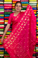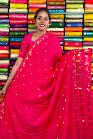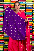 Mashru Crepe Gold Zari Birds Border And Butta Pink With Purple Saree