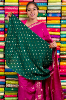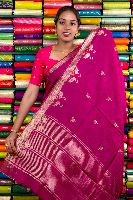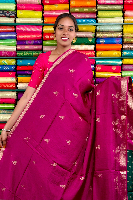 Mashru Crepe Gold Zari Birds Border And Butta Rose Wine With Green Saree