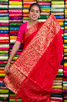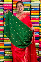 Mashru Crepe Gold Zari Birds Border And Lines Red With Green Saree