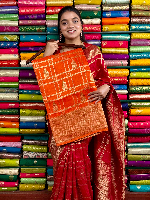 Mashru Crepe Gold Zari Border And Checks Butti Orange Saree