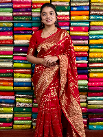 Mashru Crepe Gold Zari Border And Checks Butti Red Saree