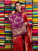 Mashru Crepe Gold Zari Border And Checks Butti Wine Saree