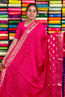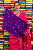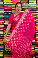 Mashru Crepe Gold Zari Border And Checks Pink With Purple Saree