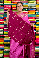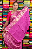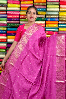 Mashru Crepe Gold Zari Peacock Border And Butta Rose Pink With Wine Saree