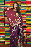 Mashru Crepe Silk Meenakari Peacock Butti Maroon Saree