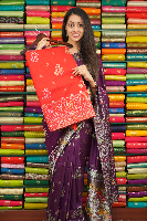 Mashru Crepe Silk Meenakari Peacock Butti Tomato Red Saree