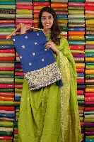 Mashru Georgette Lace Border And Butti Navy Blue Saree