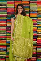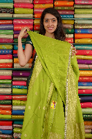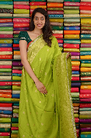 Mashru Georgette Lace Border And Butti Parrot Green Saree