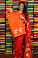 Mashru Silk Gold And Silver Zari Lines Orange Saree