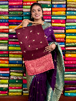 Mashru Silk Gold Zari And Butti Brown With Peach Saree