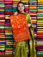Mashru Silk Gold Zari Border And Checks Butti Orange Saree
