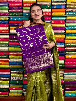 Mashru Silk Gold Zari Border And Checks Butti Purple Saree